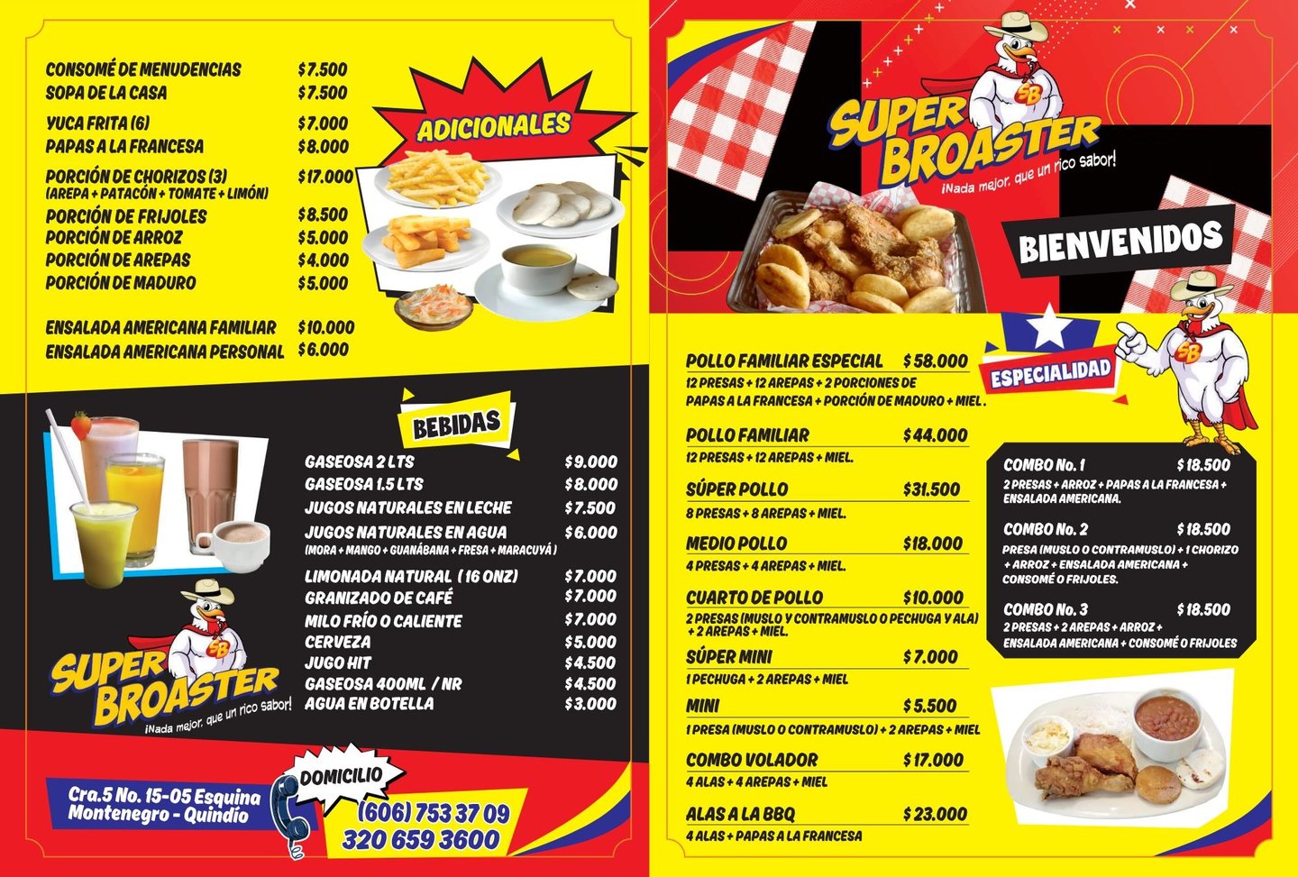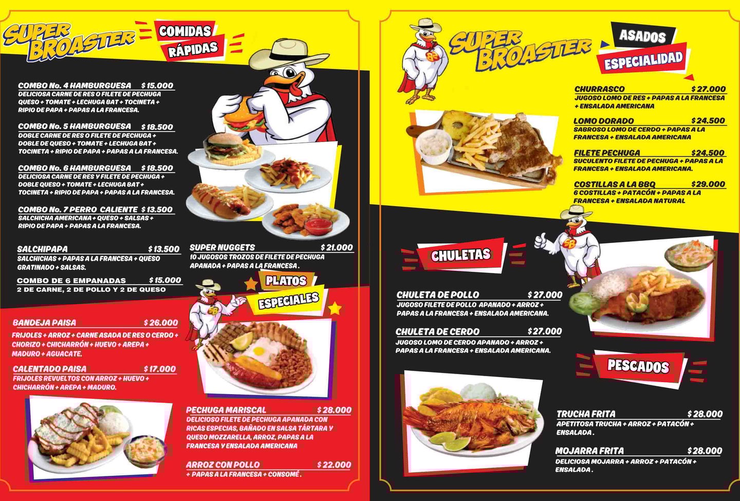 Descubre un festín de sabores en Super Broaster, Montenegro. Desde el clásico pollo a la broaster hasta la auténtica bandeja paisa, nuestro menú te transportará a los rincones más deliciosos de Colombia.